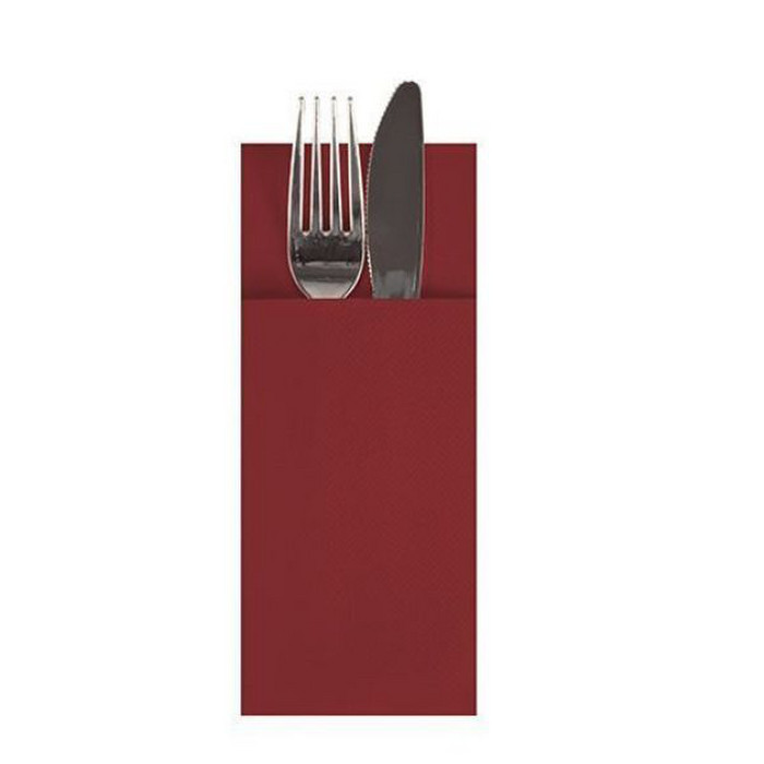 Lot de 4 cartons serviettes PRESTIGE airlaid pocket couleur bordeaux.